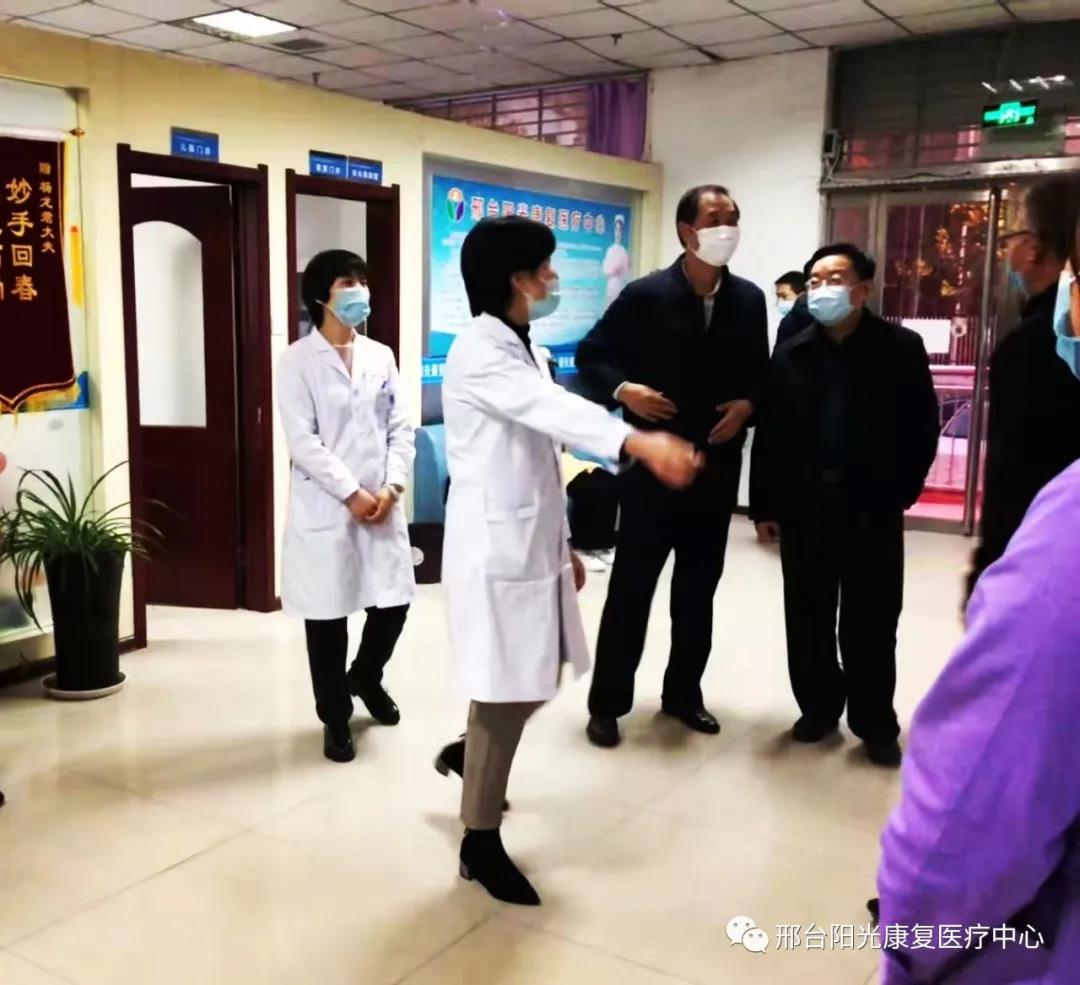 2021年11月23日,河北省计划生育科学技术研究院副院长王树松在邢台市卫健委和信都区卫健局的陪同下,来到邢台阳光康复医疗中心进行调研,并与我中心李丽院长、康复科孙飞主任等进行了座谈。